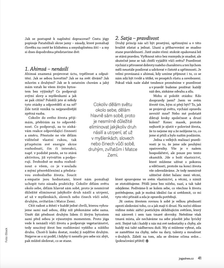 V časopisu JÓGA DNES září - říjen 2023 v rubrice Jógový úhel pohledu