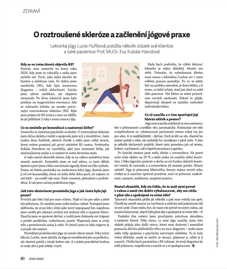 Na titulce časopisu Jóga Dnes ve vydání listopad - prosinec 2022 a i uvnitř v povídání v rubrice Profil lektora